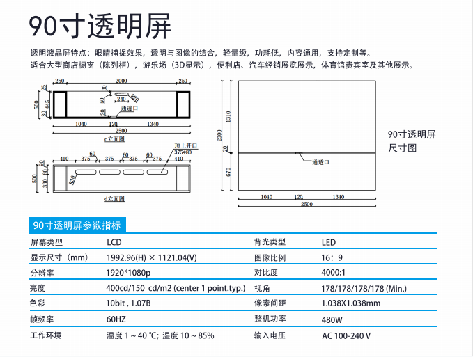 90寸透明屏透明柜透明拼接屏
